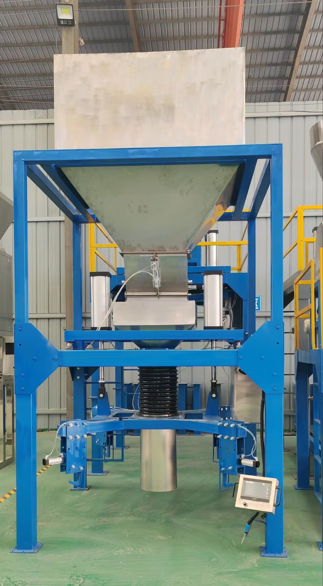 噸包機(jī)適應(yīng)于對稱重精度、稱重速度要求較高的流動性良好的粉、粒狀物料的大袋定量包裝,如PVC 、聚氨酯、復(fù)合肥、塑料粒子、石英砂、礦粉等物料